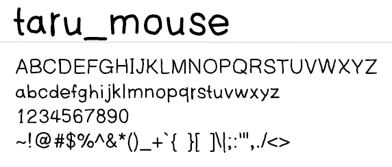 taru_mouse 폰트는 OFL 라이센스를 따르고 있습니다. 폰트 단독 판매를 제외한 개인/상업용 어떠한 용도로도 자유롭게 사용하실 수 있습니다.